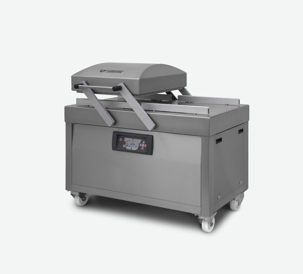 Двухкамерная вакуум-упаковочная машина Turbovac L20 предназначена для крупных производств. Используется для вакуумной упаковки пищевых продуктов. Снабжена сенсорной панелью управления с 10 программами управления циклами вакуумирования. Система сварки пакета обеспечивает двойной сварочный шов.
