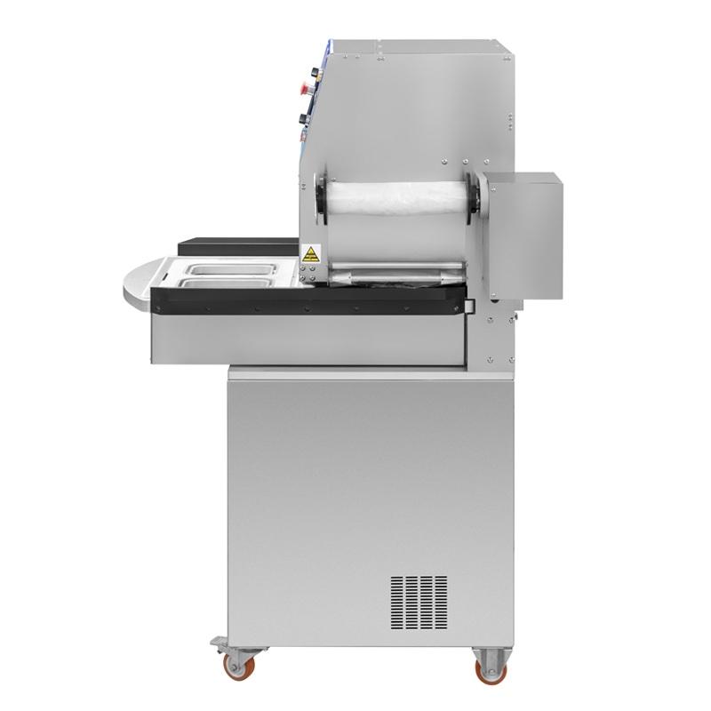 Полуавтоматический запайщик контейнеров Zermat TB5 100 с технологиями вакуум/газ, скин-упаковка в контейнер и скин-упаковка на ламинированный картон. Запайщик контейнеров из нержавеющей стали. Выполнен с операционной системой, где все функции управляются через сенсорный экран (PLC). Предназначен для средних и небольших производств.